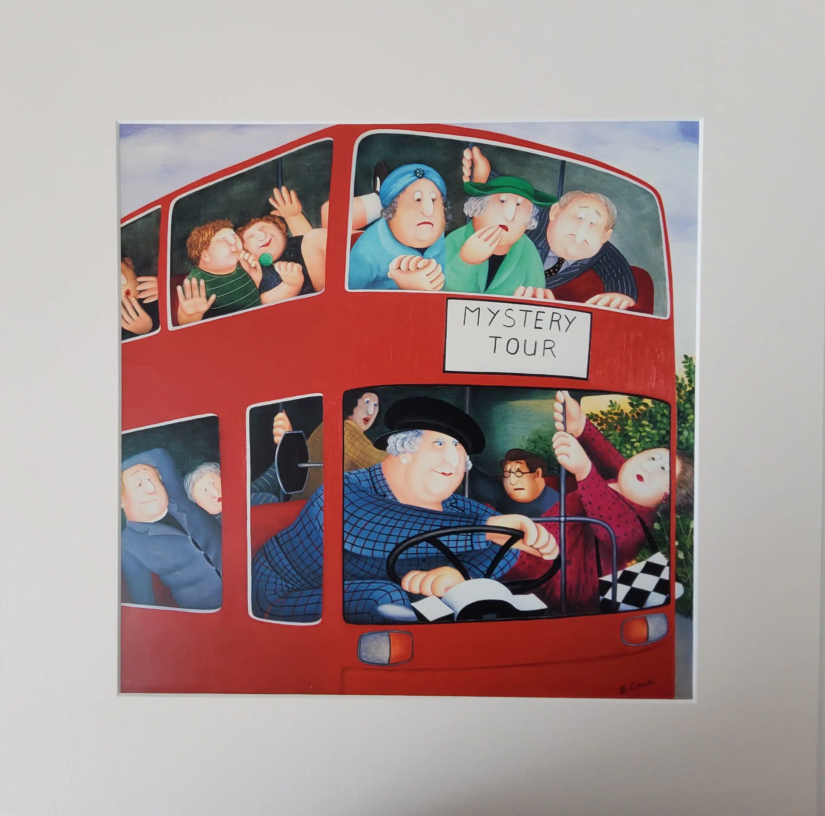 Mounted Open Edition Print of Beryl Cook’s humorous painting “Mystery Tour”